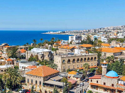 Historical context of one of the world's oldest continuously inhabited locations. The geographic background highlights its position on the Mediterranean coast of Lebanon.