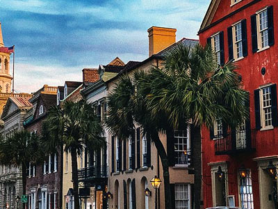 A route context for the South Carolina coast, focusing on the historical preservation of the city center and the geographic relationship with the Atlantic harbor.